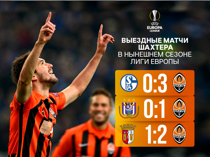 19:39.Бывший футболист донецкого клуба Виктор Грачев уверен, что «горняки» обыграют «Севилью»: «Верю, что «Шахтер» должен выиграть. С каким счетом? Может быть, 2:1, а может и 3:2. Не сомневаюсь, что нас снова ждет результативная игра, – увидим не меньше трех-четырех голов. Ну а в финале Лиги Европы, как я уже говорил не раз, ожидаю противостояние «Ливерпуля» и «Шахтера».19:24.Экс-игрок «Днепра» Андрей Полунин рискнул спрогнозировать счет поединка «Шахтера» против «Севильи»: «Команда Мирчи Луческу уже показывала на примере «Шальке» (после домашней ничьей), что может выходить из незавидного положения. Тем более сейчас, когда находится на эмоциональном и психологическом подъеме после уверенной победы над «Динамо». Поэтому рискну предположить, что в Севилье «Шахтер» добьется победы со счетом 1:0».19:05. 3 часа до матча!.jpg) 18:59. А вот как свои выездные матчи провел украинский клуб в нынешнем розыгрыше Лиги Европы: