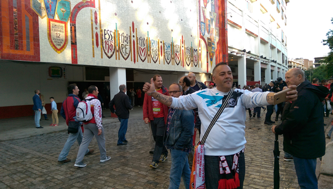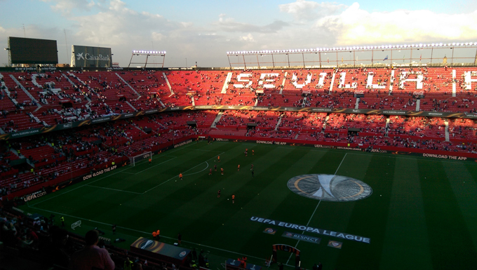 — Sevilla FÚtbol Club (@SevillaFC) 5 мая 2016 г.21:36. Трибуны«Рамон Санчес Писхуан» заполняются. На каждом месте приготовлен флаг с символикой Севильи:.jpg)