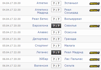 Завершит программу 30-го тура противостояние «Валенсии» и галисийской «Сельты». Обе команды не радуют результатами в Примере своих болельщиков, однако, что «Валенсия», что «Сельта» могут показать яркий футбол и порадовать зрителей обилием моментов и голов.